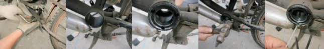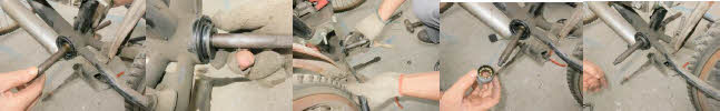 | Remove old crank & chain; Insert hubs in both sides and hammer tap in place while lining up 3 bolt holes. |