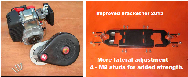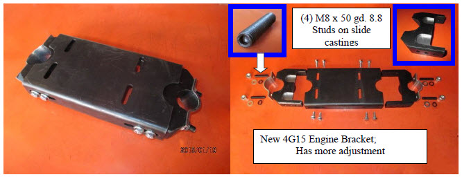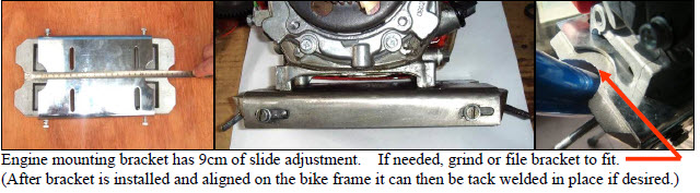 | Fore and aft slide adjustment; Position the bracket to best fit engine and frame: |