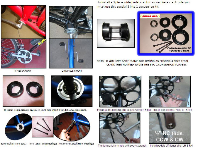 You have just purchased an outstanding DIY parts kit; DIY means “do it yourself”. We hope you enjoy what you end up with. If you’re wondering why we have so many options it is because all markets are different and personal opinions differ. Some folks require the cheapest way and some require the premium way. The end user or installer must decide to suit his own needs. Mechanical aptitude and hand tools are required. Be sure to apply Loc-Tite 242 thread lock to all fasteners and final torque to ensure all are tight and secure. It is best to have a qualified automotive or motorcycle mechanic do the installation if you lack the necessary experience and talent. Please use caution when operating a motorized bicycle and follow all federal, state and local laws: |