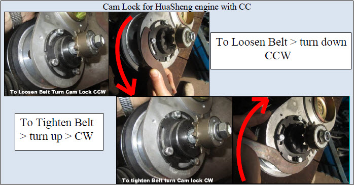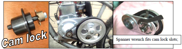 | Use spanner wrench to adjust belt tension; Tighten 4 bolts securly on cam lock after adjusting belt tension. |