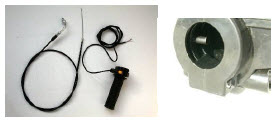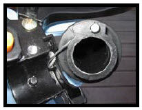 Install throttle on right side handle bar. Drill 15/64” hole in the handle bar to accommodate throttle housing lock pin. Measure deepth of handle and pin location to locate the spot to drill handlebar. Use center punch to make a dent to start the drill. Make sure handle does not bottom out on the handlbar. |